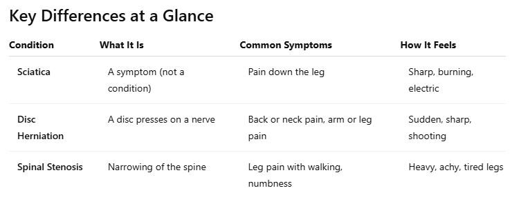 Sciatica vs. Disc Herniation vs Stenosis: What’s the Difference?